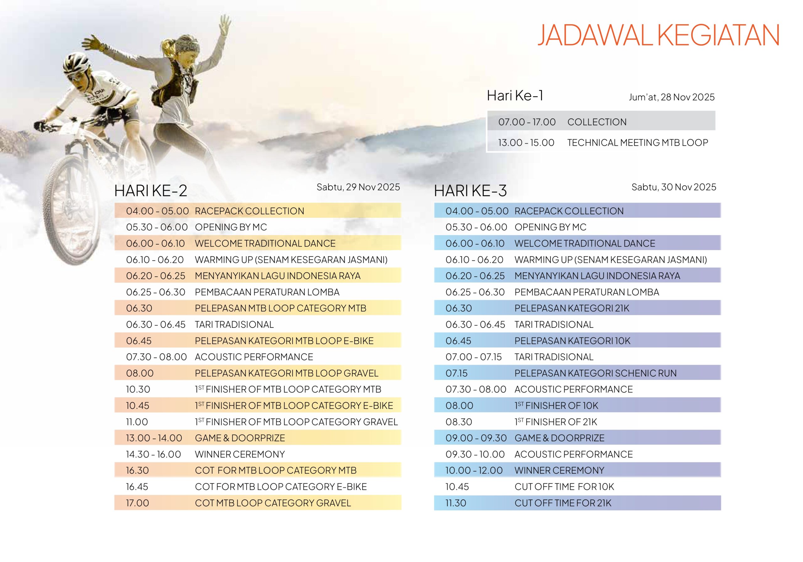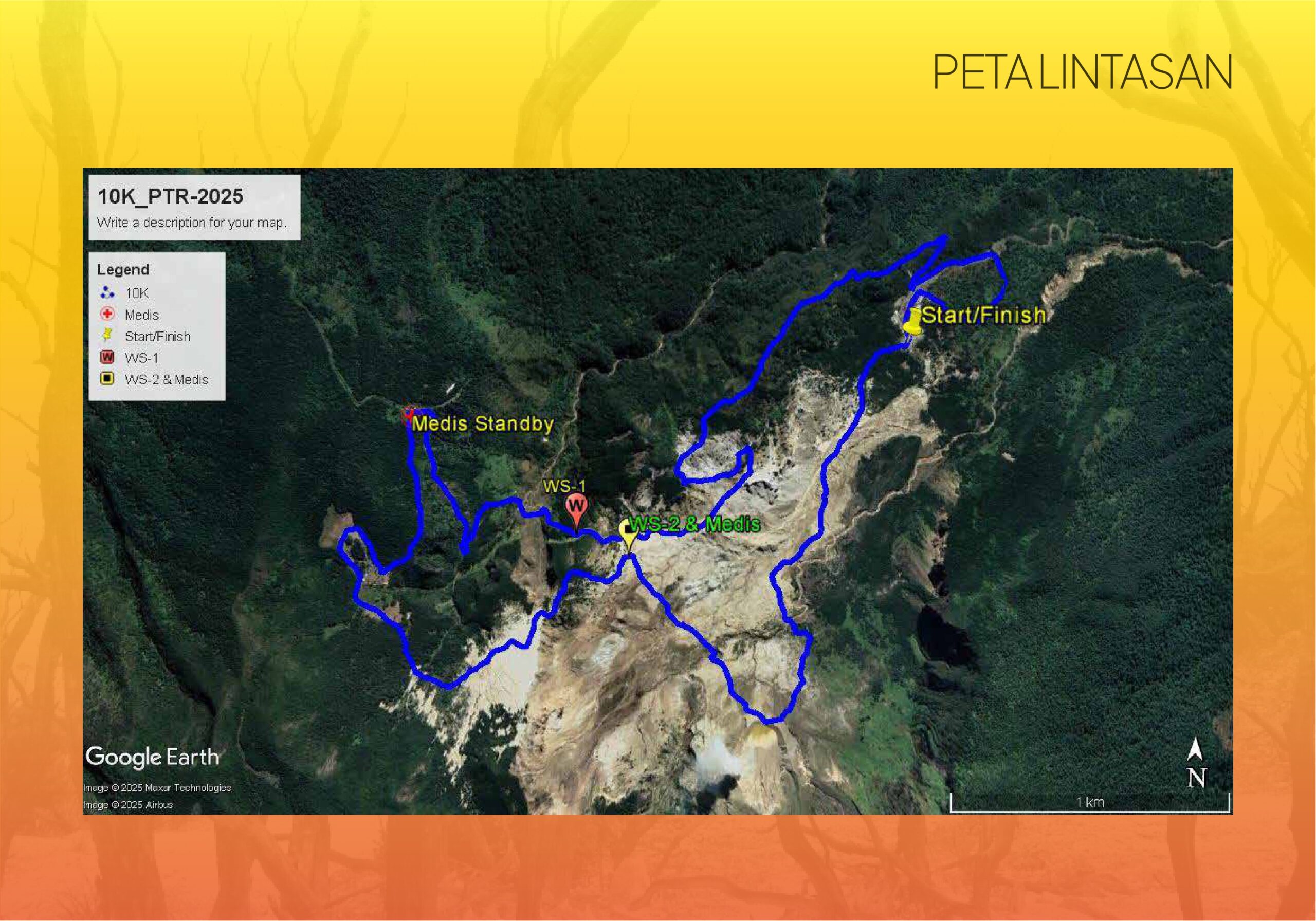 PAPANDAYAN TRAIL RUNNING RACE 10K Class Race : Open : Men & Women (15th - 39th) Master : Men & Women (> 40th) Start Date : Sunday, 30th November 2025 Flag Off : 07.00 WIB Elevation Gain : 614 m+ Cut of Time : 5 Hours Distance : 10 Km
